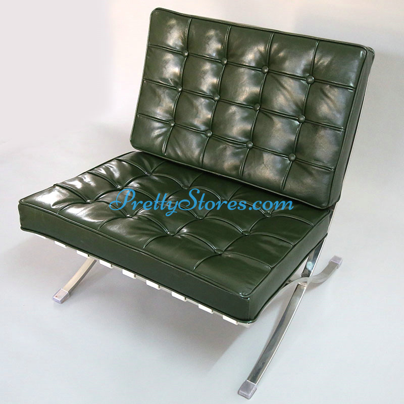 Specification of this offerBarcelona style Chair with Ottoman in Green Italian Leather. The Cushions..