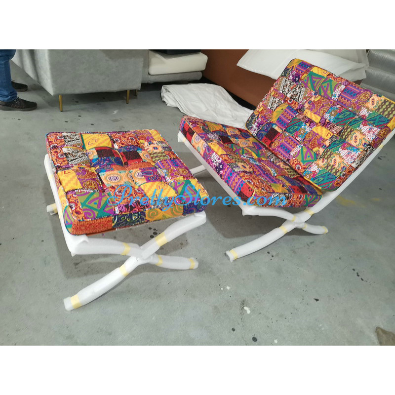 Specification of this offerBarcelona style Chair with Ottoman in White Italian Leather. The Cushions..