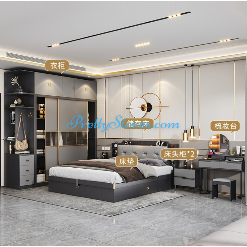 This bedroom set is designed in a simple Nordic and light luxury style, with modern furniture suitable for any d¨¦cor. It includes a bed with 1.5m or 1.8m width, 2 bedside cabinets, a bed mattress, and a dressing table. It is available in various sizes, colors and materials to suit different tastes. The bed is made of solid wood and MDF board, coated with eco-friendly lacquer. The bedside cabinets and dressing table are made of high quality solid wood and use dovetail construction technique for strength and durability. It is beautiful, elegant and comfortable, perfect for creating a cozy and relaxing atmosphere.Please be noted, our websites are under mass upgrading and the specification above was initially made by AI and will be gradually refined by humans.Thus, you may see some mistakes,or some elements will be adjusted later after your first viewing. Please feel free to contact us to get a confirmation of the product's specifications first before you place the order. And there is a chance your order may be canceled without checking first due to some inaccurate information in the specification. But please don't worry, we will double check with you after your order and only charge after your full confirmation, and if your order needs to be canceled, we will compensate you with a discount coupon. Thank you very much for all your support and attention.