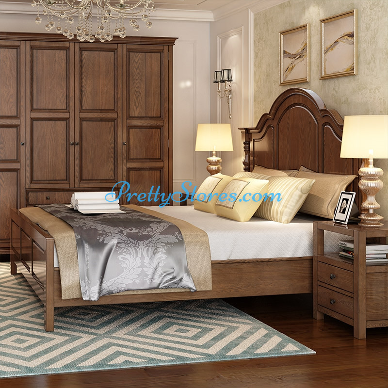 American Country Solid Wood Bed 180cm Double Bed Modern Minimalist Master Bedroom Furniture Set Wedding Bed