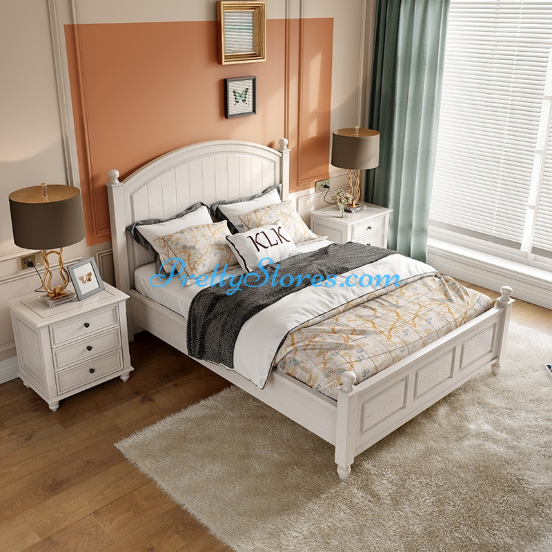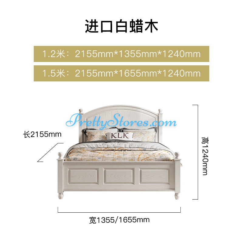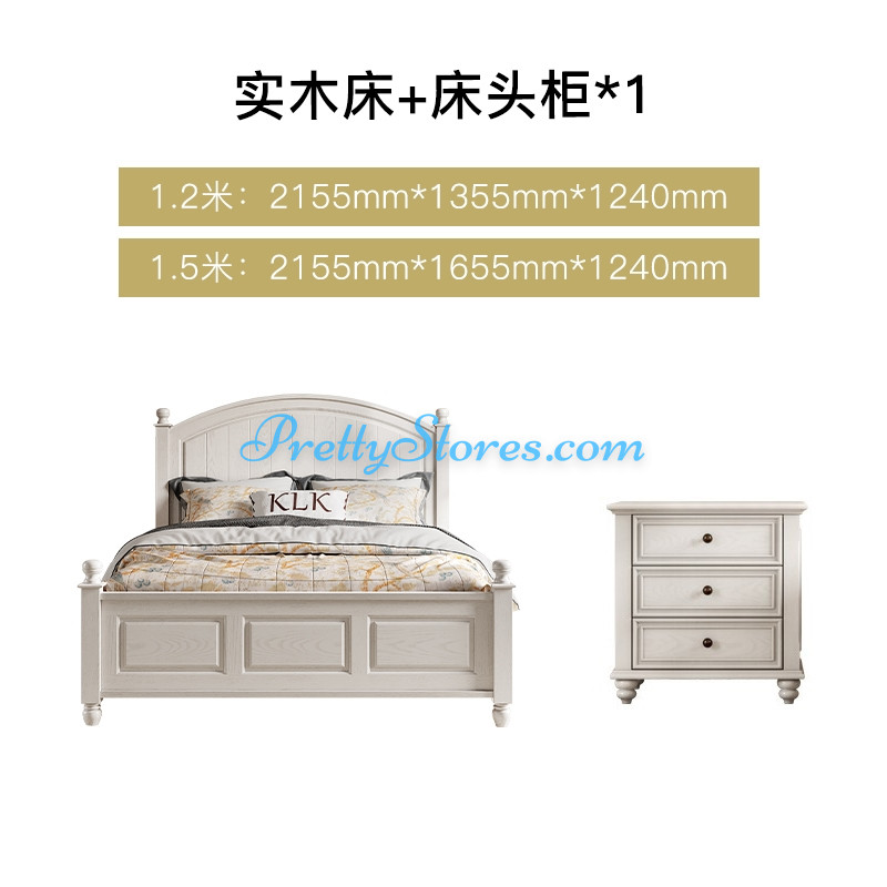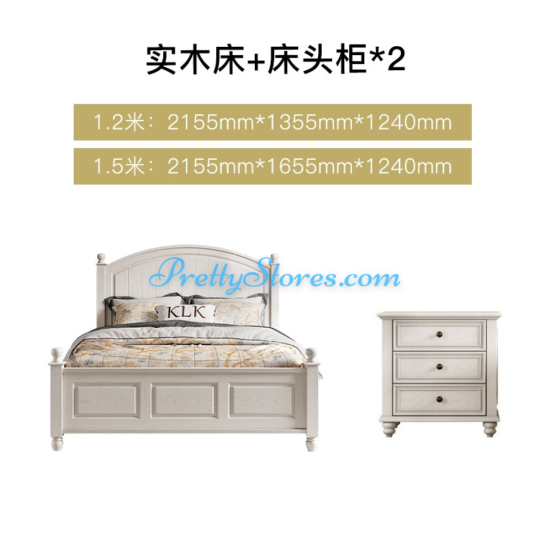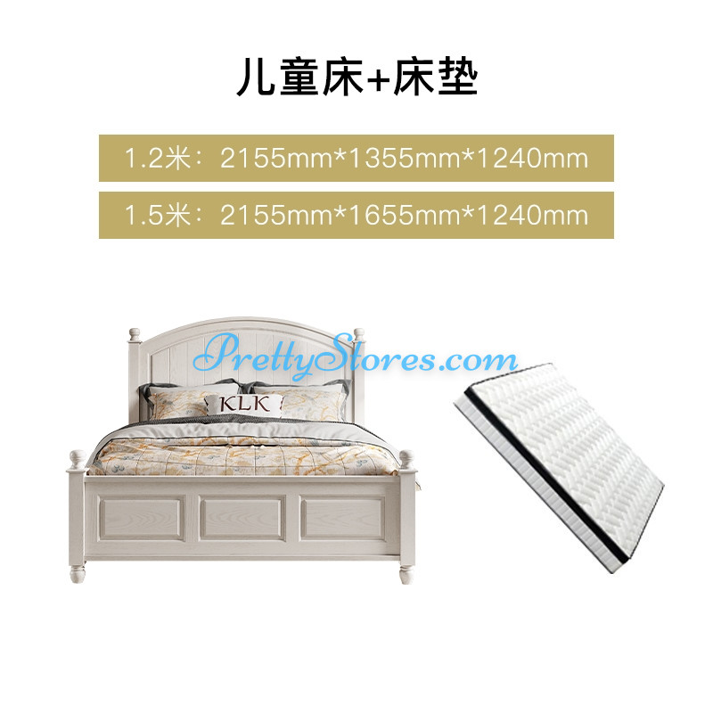American Solid Wood Bed 150cm Double Bed Kids Boys Girls White Single Bed 120cm Bedroom Furniture Set