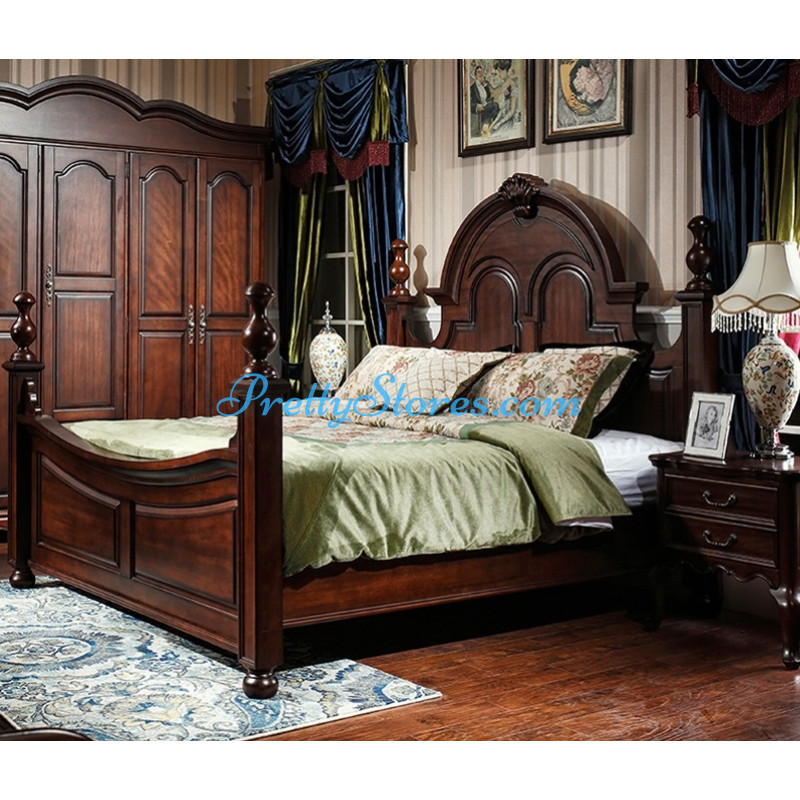 American Solid Wood Bed 180cm Master Bed Double Bed Bedroom Vintage Walnut