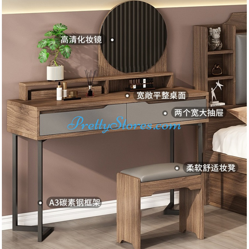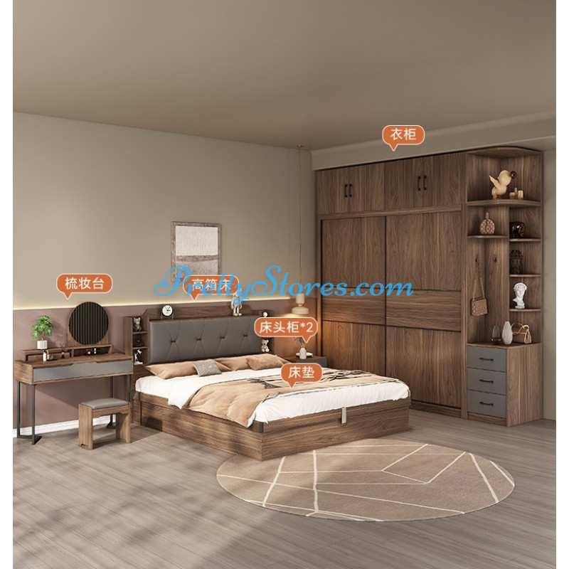 This walnut brown bedroom furniture set is perfect for any bedroom or wedding room. It features a simple, modern design which comprises of a bed, a nightstand, a dressing table and mattress of different sizes. The bed comes in 1.5m and 1.8m sizes and can be paired with either one or two nightstands. A mattress is also included if you choose the bed with two nightstands and a dressing table for a complete set. All elements of this set are made from high quality material and the mix of warm walnut brown color gives the set an inviting and cozy atmosphere.Please be noted, our websites are under mass upgrading and the specification above was initially made by AI and will be gradually refined by humans.Thus, you may see some mistakes,or some elements will be adjusted later after your first viewing. Please feel free to contact us to get a confirmation of the product's specifications first before you place the order. And there is a chance your order may be canceled without checking first due to some inaccurate information in the specification. But please don't worry, we will double check with you after your order and only charge after your full confirmation, and if your order needs to be canceled, we will compensate you with a discount coupon. Thank you very much for all your support and attention.