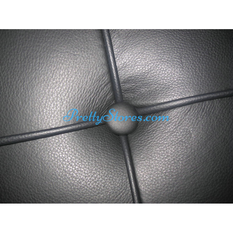 Barcelona style Ottoman in Black Italian Leather. The Cushion is made of Italian Leather in Standard grade: Using Italian leather on the front while PU Leather on the back. Other 5 Grades of different leather are also available the detail of which you can click the links in the description below to get. The frame is made of solid stainless steel with a loading capacity of more than 300kg and each foot is with plastic foot protector. The frame straps are made of high quality composite leather which can last for at least 5-10 years. The regular dimension of Barcelona Ottoman is 60(L)*55(W)*43(H)cm which is around 24(L)*22(W)*17(H) inches.