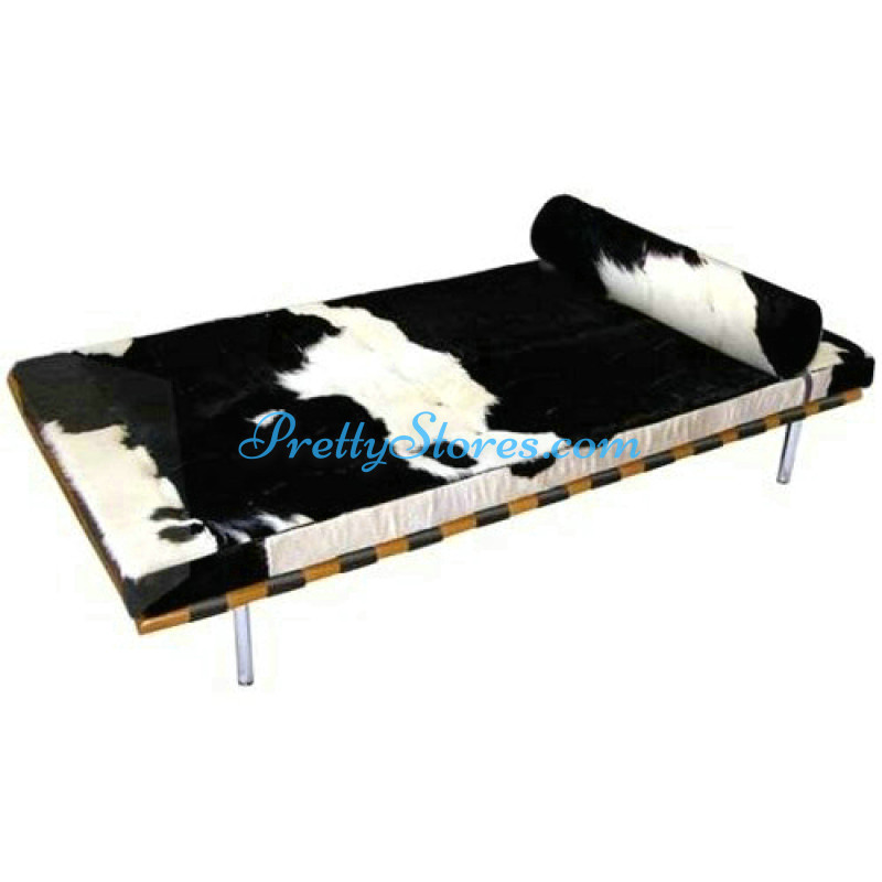 Pony Skin Leather Barcelona Style Daybed With No Piping