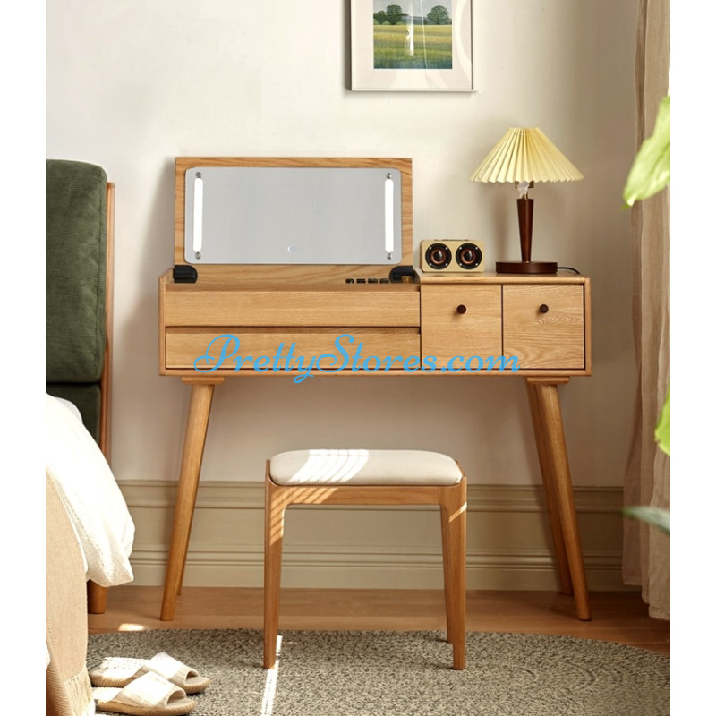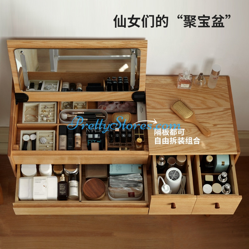 This Japanese style wooden makeup table is a modern and simple addition to small bedrooms. It is made from hardwood and comes in eight different sizes and colors. The first four options are single, double and triple drawer makeup tables with lights, available in both original hardwood and walnut finishes. All of these have a size of 800*400. The other four options come with a matching stool and have size of 1000*400*790 or 1200*400*790. There are also ones with a single, double or triple drawer with light in both original hardwood and walnut finishes. All of these provide a practical yet modern solution to making your bedroom a unique and stylish place to apply makeup.Please be noted, our websites are under mass upgrading and the specification above was initially made by AI and will be gradually refined by humans.Thus, you may see some mistakes,or some elements will be adjusted later after your first viewing. Please feel free to contact us to get a confirmation of the product's specifications first before you place the order. And there is a chance your order may be canceled without checking first due to some inaccurate information in the specification. But please don't worry, we will double check with you after your order and only charge after your full confirmation, and if your order needs to be canceled, we will compensate you with a discount coupon. Thank you very much for all your support and attention.