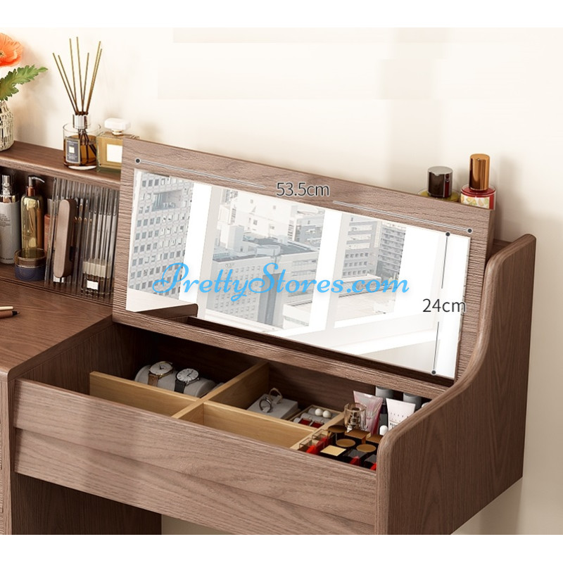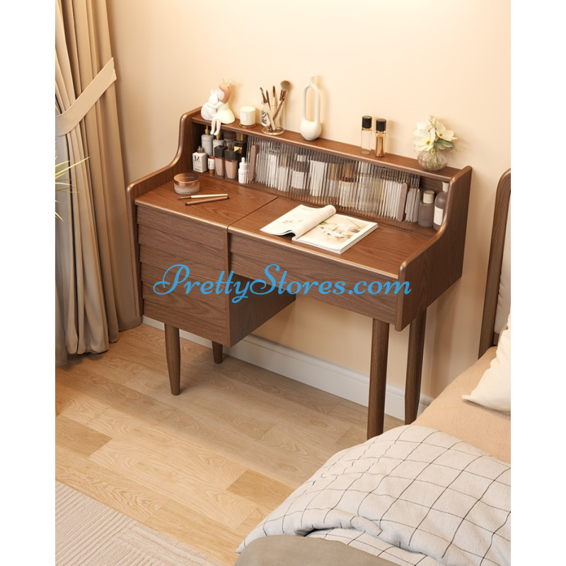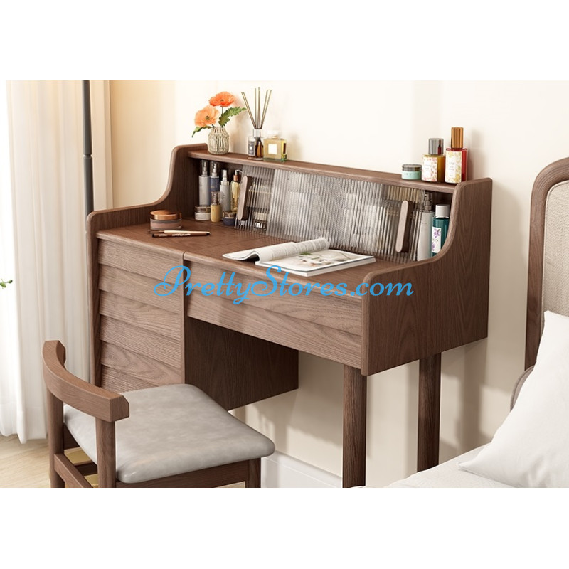 This solid wood dressing table storage cabinet combines modern and simple design, perfect for any bedroom. Featuring a wooden top with an opening flap, it includes a dressing table, desk and makeup table, all in one. It comes in two different sizes and two colors:100cm and 80cm, with either walnut or natural wood. Also included in the package is the necessary installation of the seat and stool to complete the set. All materials are made from solid wood for improved durability and strength. This is the perfect storage solution for any bedroom.Please be noted, our websites are under mass upgrading and the specification above was initially made by AI and will be gradually refined by humans.Thus, you may see some mistakes,or some elements will be adjusted later after your first viewing. Please feel free to contact us to get a confirmation of the product's specifications first before you place the order. And there is a chance your order may be canceled without checking first due to some inaccurate information in the specification. But please don't worry, we will double check with you after your order and only charge after your full confirmation, and if your order needs to be canceled, we will compensate you with a discount coupon. Thank you very much for all your support and attention.