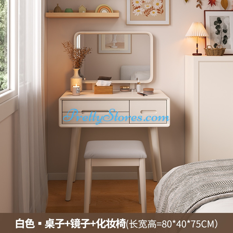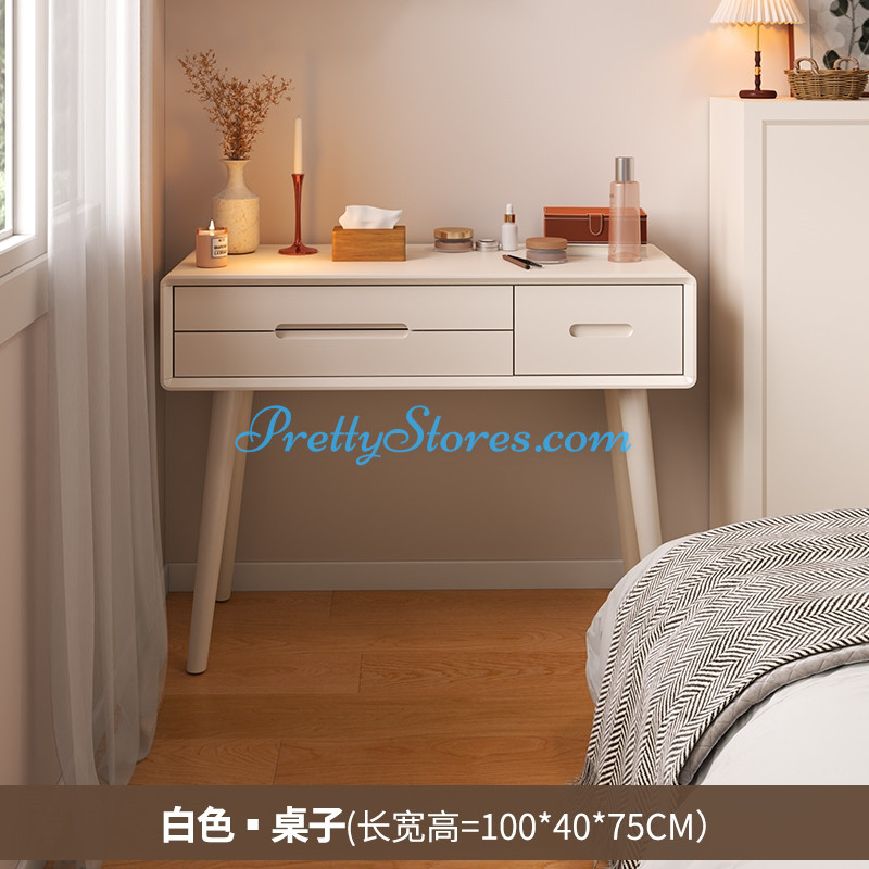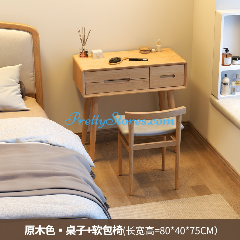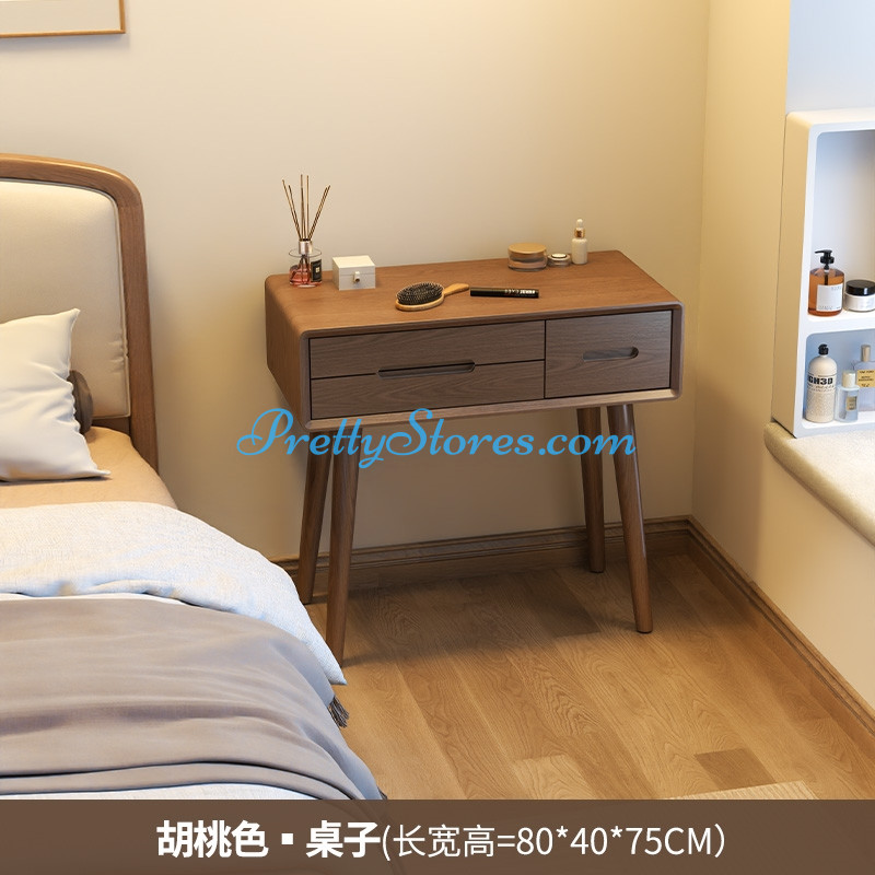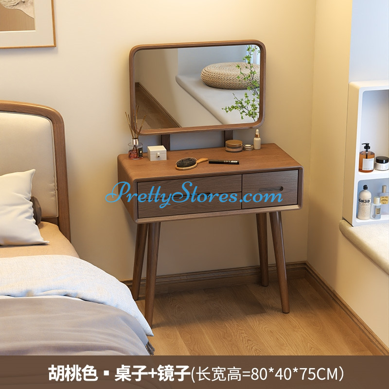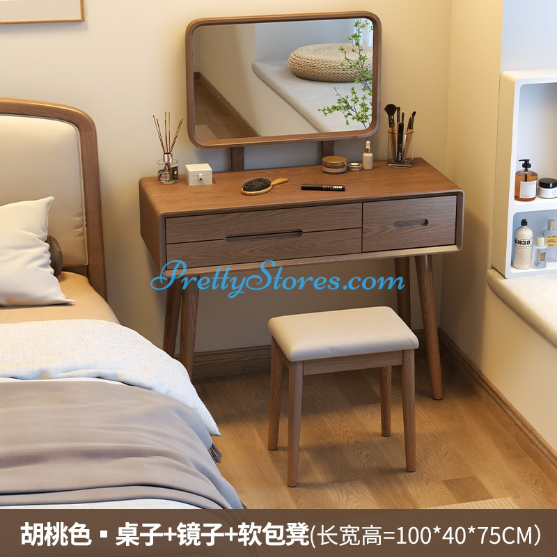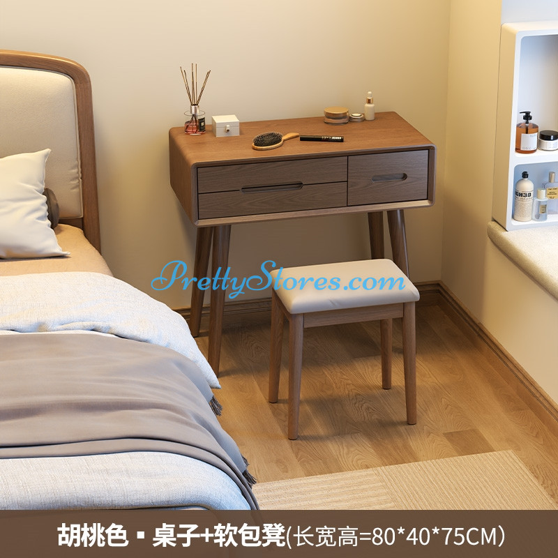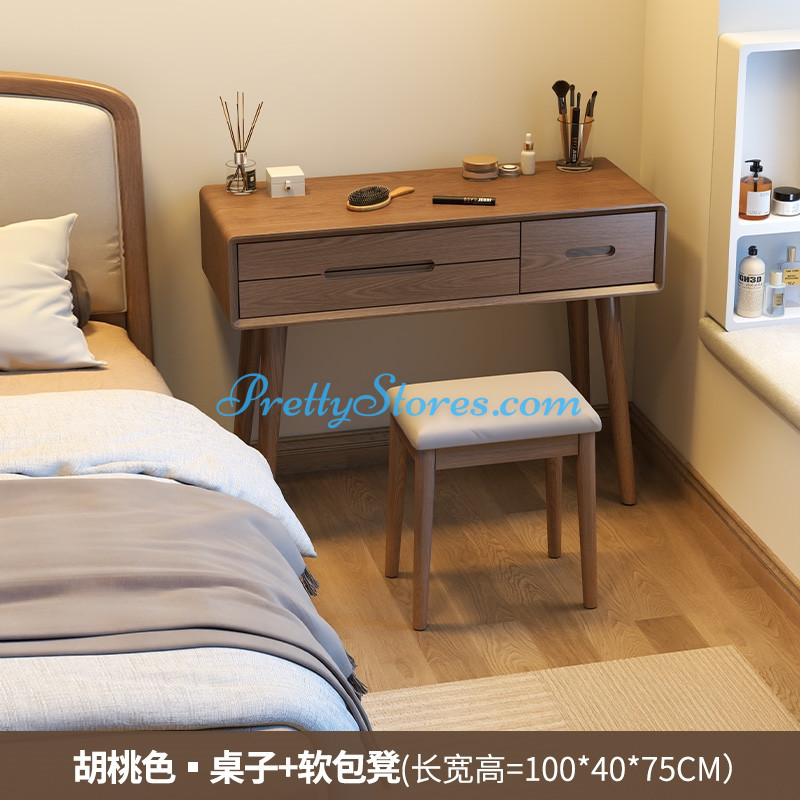 This modern and minimalist make-up table is the perfect addition to any bedroom. Crafted from solid wood, it is finished in a luxurious walnut color for a look that is both stylish and elegant. The table comes in two sizes: 80cm and 100cm. It features a convenient built-in mirror and comes with an optional walnut-colored ottoman and Smiling Chair for added comfort. The attention to detail and quality craftsmanship will make sure this make-up table will last you for years.Please be noted, our websites are under mass upgrading and the specification above was initially made by AI and will be gradually refined by humans.Thus, you may see some mistakes,or some elements will be adjusted later after your first viewing. Please feel free to contact us to get a confirmation of the product's specifications first before you place the order. And there is a chance your order may be canceled without checking first due to some inaccurate information in the specification. But please don't worry, we will double check with you after your order and only charge after your full confirmation, and if your order needs to be canceled, we will compensate you with a discount coupon. Thank you very much for all your support and attention.