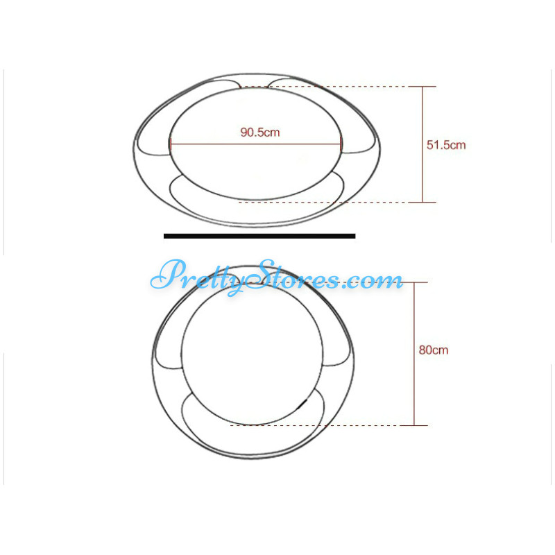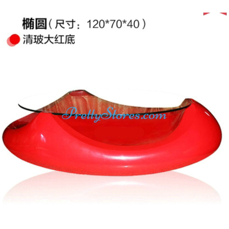 Designed like an UFO. Material: fiberglass and tempered glass. Size:120*70*40cm. The base color can be red, wine red or white. The glass color can be clear, black.