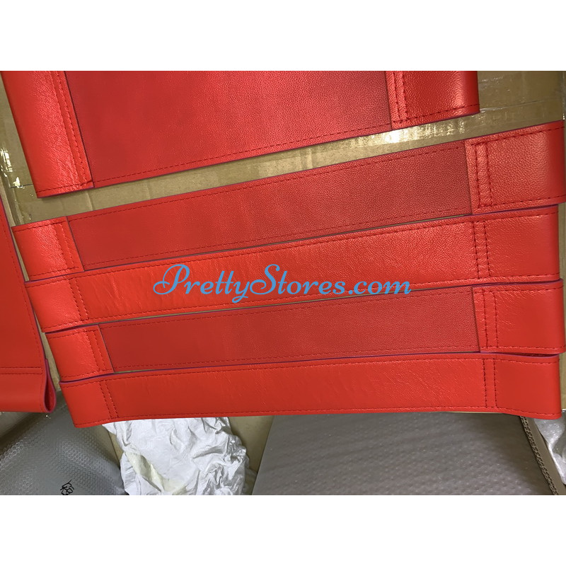 Repair Replacement Straps and Cushion for Wassily Kandinsky Chair in Standard grade: Using Italian leather on the front while Bonded leather on the back. Two sizes are available. One is the size for Knock-off version, the other is the size for Original version. Please refer to the Dimension Drawings for the full details about the size. We can also customize any size upon requests with additional cost. Color is Red, other colors are available with extra costs too.