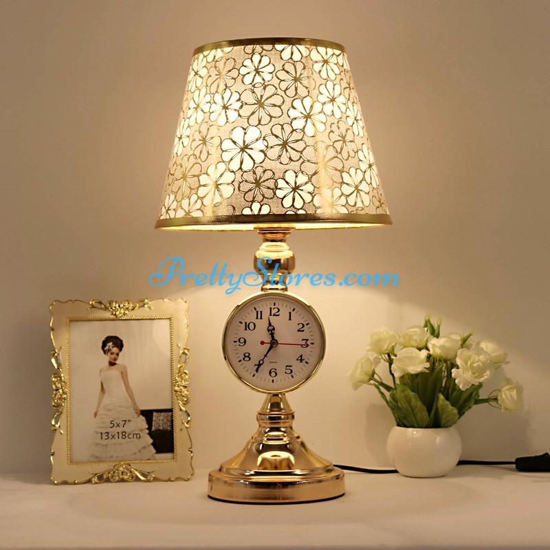 European Luxury Clocks Table Lamp Nordic Bedroom Remote Control American Wedding Creative Decorative Bedside Lamp