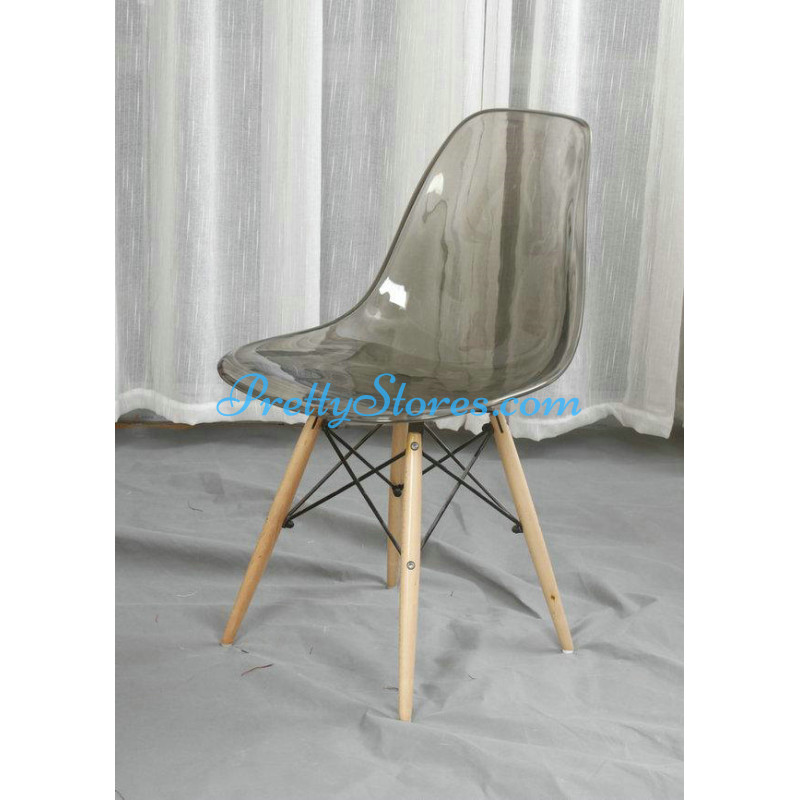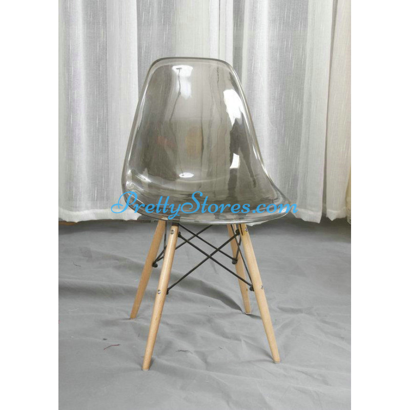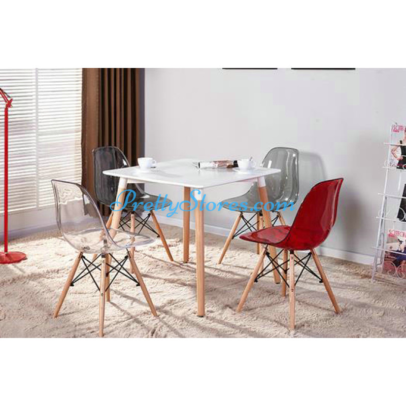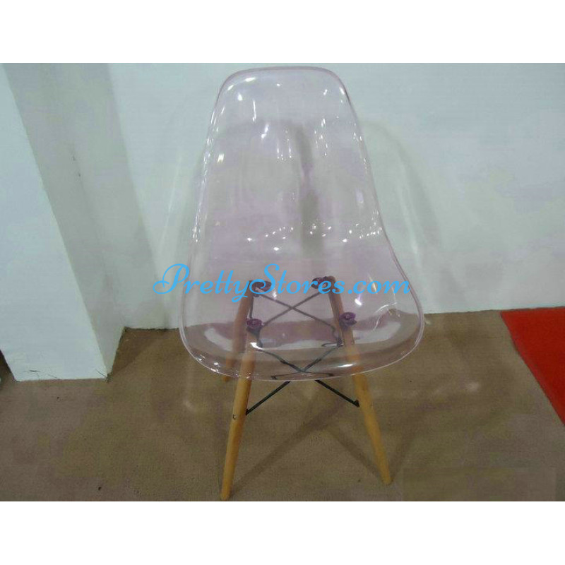 DSW style dining chair in transparent color.Made of ABS material,size:47*54*81,with wood base. Color can be transparent clear, transparent red, transparent black and etc.