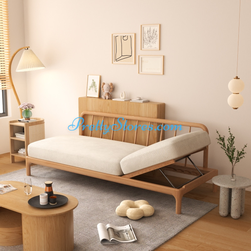 2in1 Foldable Sofa Bed Small Wooden Cloth Upholstered Living Room Furniture